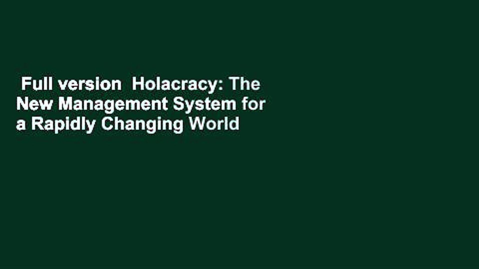 Full Version Holacracy The New Management System For A Rapidly Changing World For Free Video Dailymotion